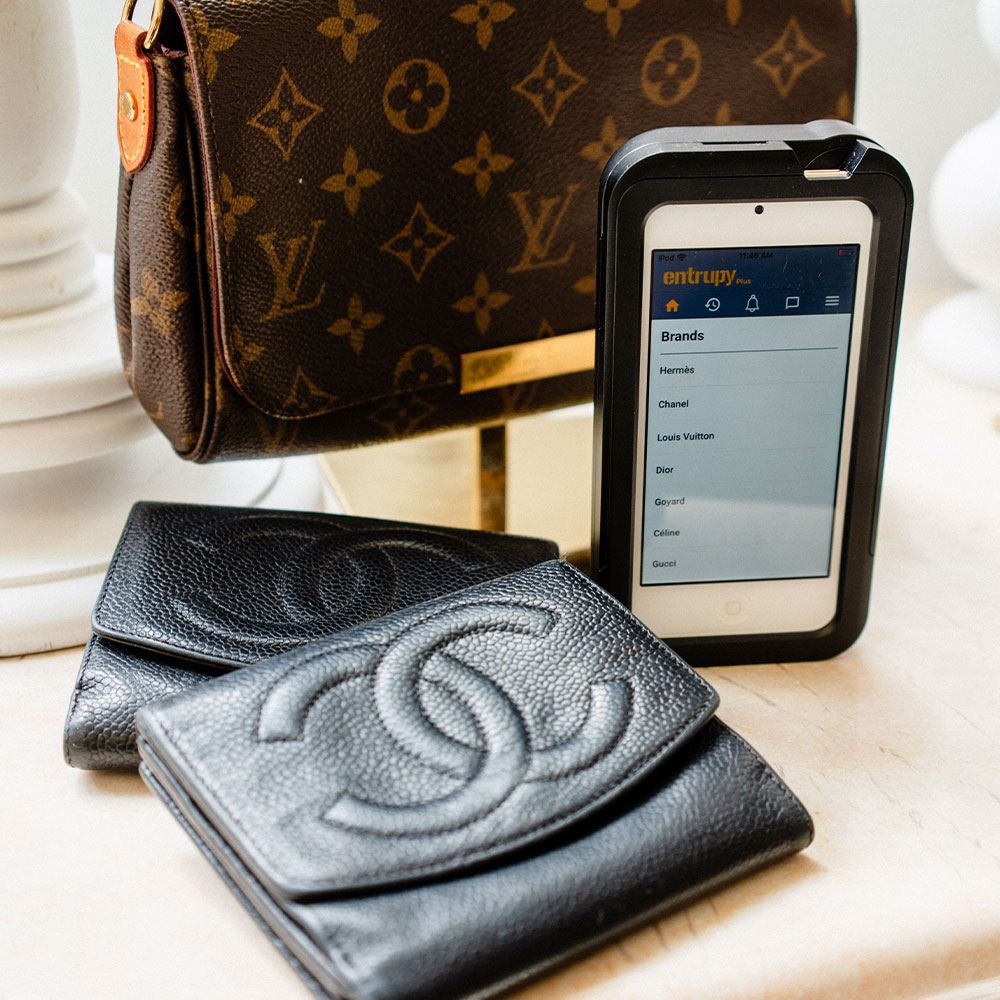 Entrupy is a third-party authentication device using AI technology to determine the authenticity of designer bags and sneakers.