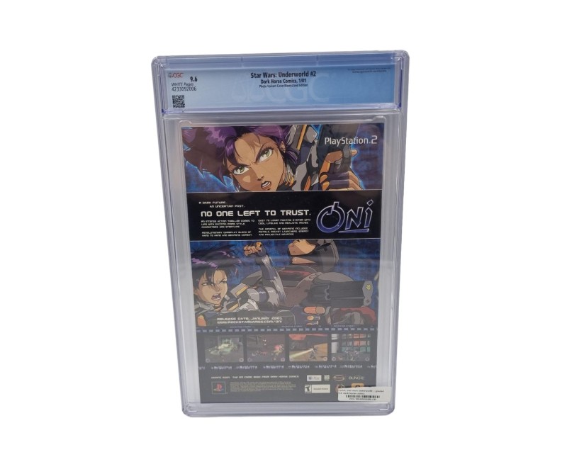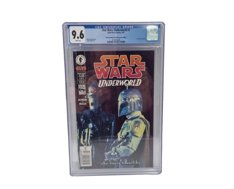 This high-grade Star Wars collectible from Dark Horse Comics is a must-have for any devoted fan. Graded at an impressive 9.6, this "Star Wars Underworld" comic book is in excellent condition, with minimal signs of wear. Its captivating storyline and exceptional artwork make it a valuable addition to any comic book collection.