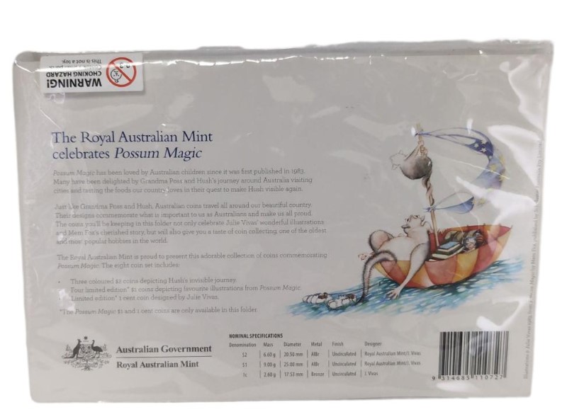This 2017 POSSUM MAGIC COIN COLLECTION from the ROYAL AUSTRALIAN MINT is a captivating set of coins that celebrates the beloved children's book series. Featuring intricate designs inspired by the classic stories, this collection is a must-have for coin enthusiasts and fans of Australian literature. With its exceptional craftsmanship and limited availability, this set is sure to become a cherished addition to any collection.
