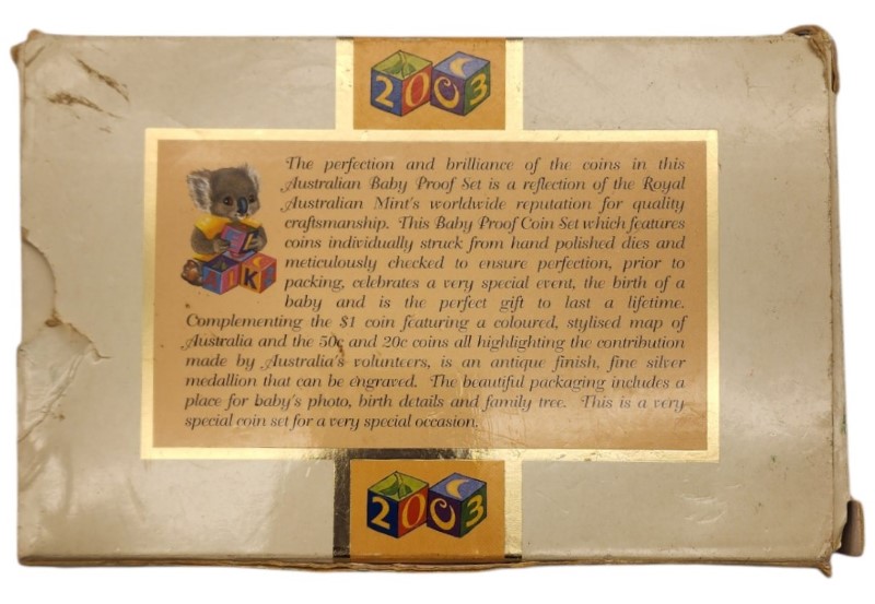 This Australian Mint 2003 Baby Proof Coin Set is a must-have for any coin collector. Featuring a range of pristine coins, this set offers a glimpse into Australia's numismatic history. The coins are in good condition, with little sign of wear, ensuring they remain a valuable addition to any collection.