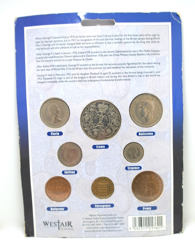 This impressive coin collection features a curated selection of original British coins from the Royal Windsor Collection by Westair. Carefully preserved, these coins showcase the rich history and heritage of the United Kingdom. With a little sign of wear, the collection remains in good condition, making it a captivating addition to any numismatic enthusiast's portfolio.