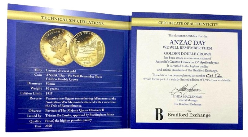 Model Name: 2020 Anzac Day Golden Double Crown Proof Coin