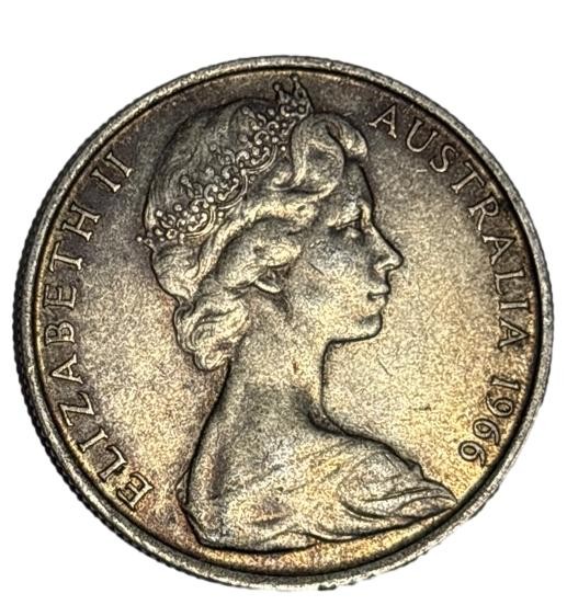 This 1966 round 50c coin is a sought-after collectible that has been well-used over the years. With its classic design and historical significance, it offers a unique addition to any numismatic collection. The coin's condition reflects its age and previous use, making it a genuine representation of its era.