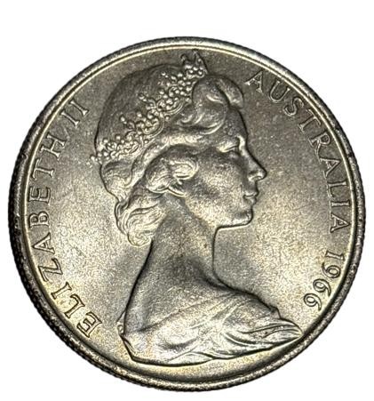 This 1966 round 50c coin is a must-have addition to any collector's portfolio. Crafted with precision and attention to detail, this piece offers a glimpse into Australia's rich numismatic history. Its timeless design and well-used condition lend it an air of authenticity, making it a true treasure for enthusiasts.