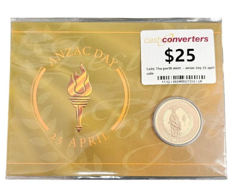 This ANZAC Day 25 April coin from The Perth Mint is a thoughtful collectible commemorating the solemn occasion. Struck in silver, this coin features a design honouring the service and sacrifice of Australian and New Zealand troops. With little sign of wear, this piece remains in good condition, making it a meaningful addition to any numismatic collection.