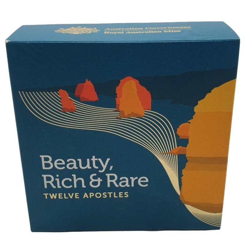 This stunning 1 oz Coloured Silver Proof Domed Coin from the Royal Australian Mint celebrates the Twelve Apostles, a natural wonder along the Great Ocean Road. The domed design and vibrant colours capture the beauty of this iconic Australian landscape. A unique addition to any coin collection.