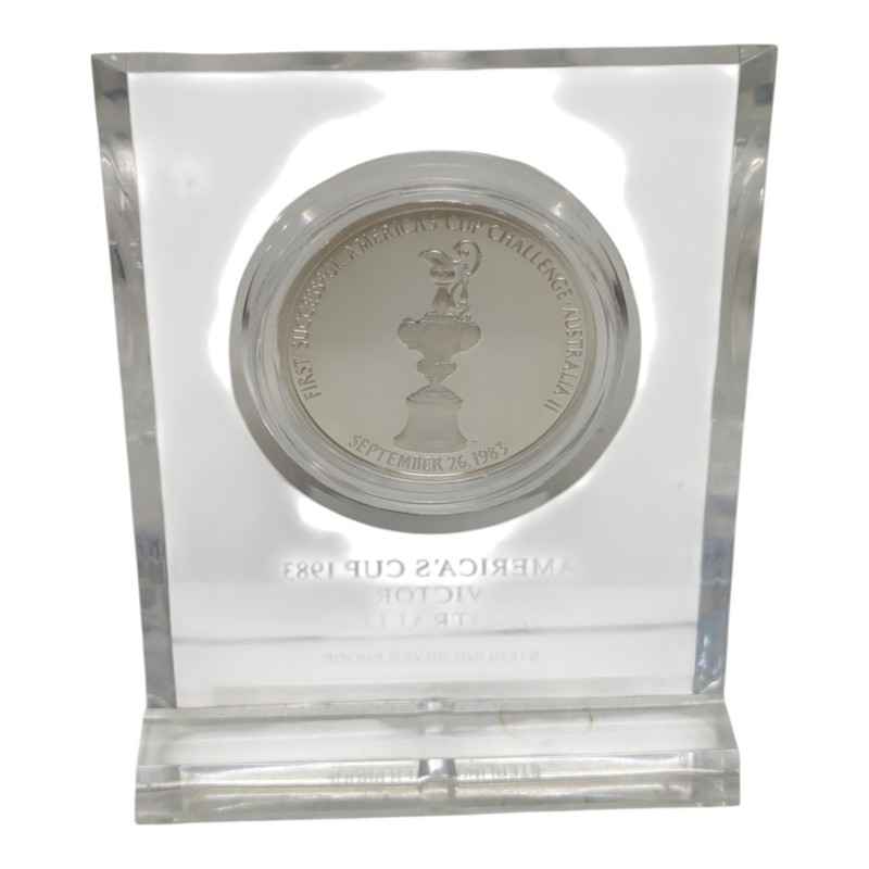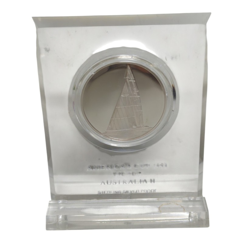 This commemorative coin celebrates the historic 1983 America's Cup yacht race, where the Australian team defeated the defending American champions, ending their 132-year winning streak. Crafted with precision, this coin features intricate designs that capture the excitement and triumph of that momentous event. A captivating addition to any collection, this coin is a testament to the spirit of competition and the thrill of maritime sports.