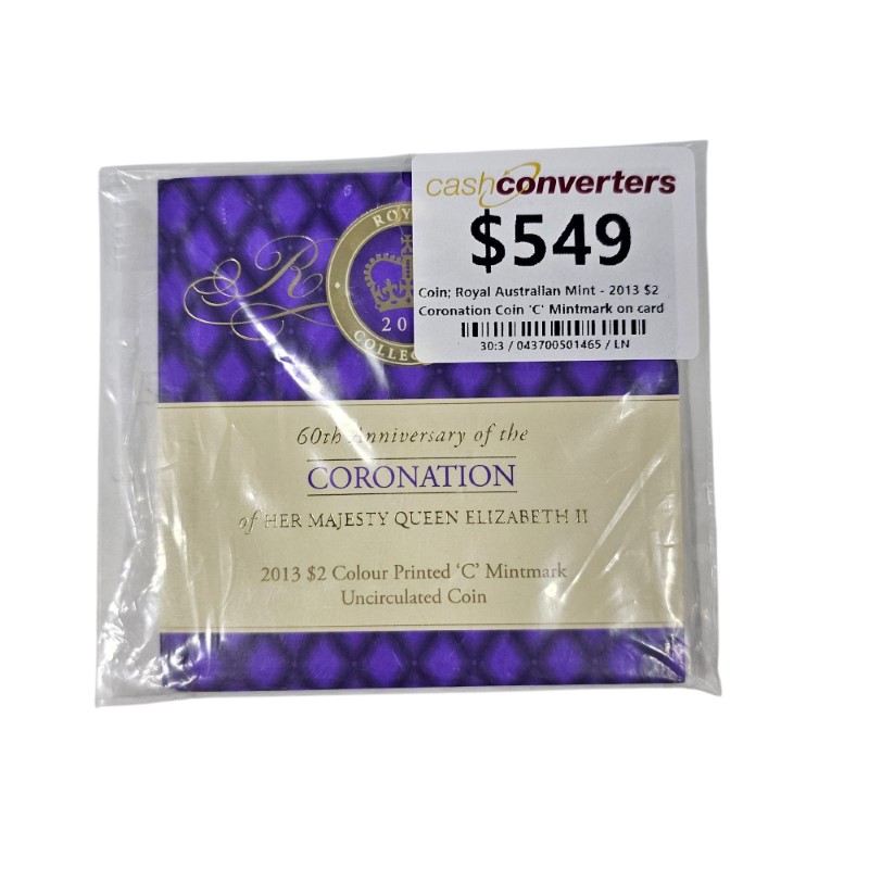 2013 $2 Coronation Coin 'C' Mintmark On Card