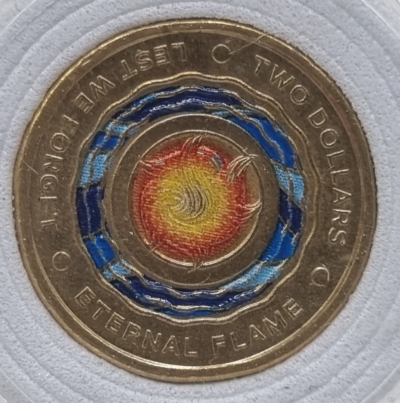 Model Name: 2018 Anzac Day Lest We Forget Eternal Flame $2 Coloured Circulating Loose Coin