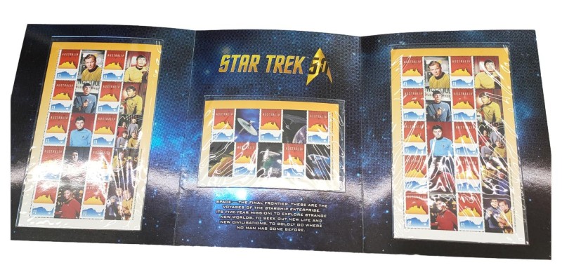 This exquisite Star Trek 50th Anniversary Stamps collection is a must-have for any devoted fan or avid philatelist. Featuring a range of vibrant and iconic designs, this set commemorates the enduring legacy of the beloved sci-fi franchise. With stunning attention to detail, each stamp captures the essence of the Star Trek universe, from beloved characters to iconic starships. Whether you're a seasoned collector or new to the hobby, this set is sure to captivate and delight.