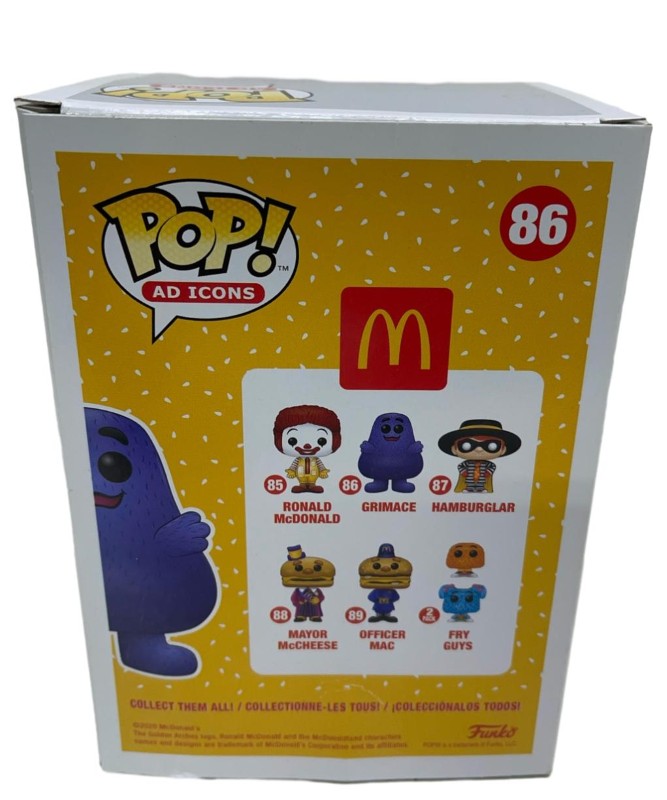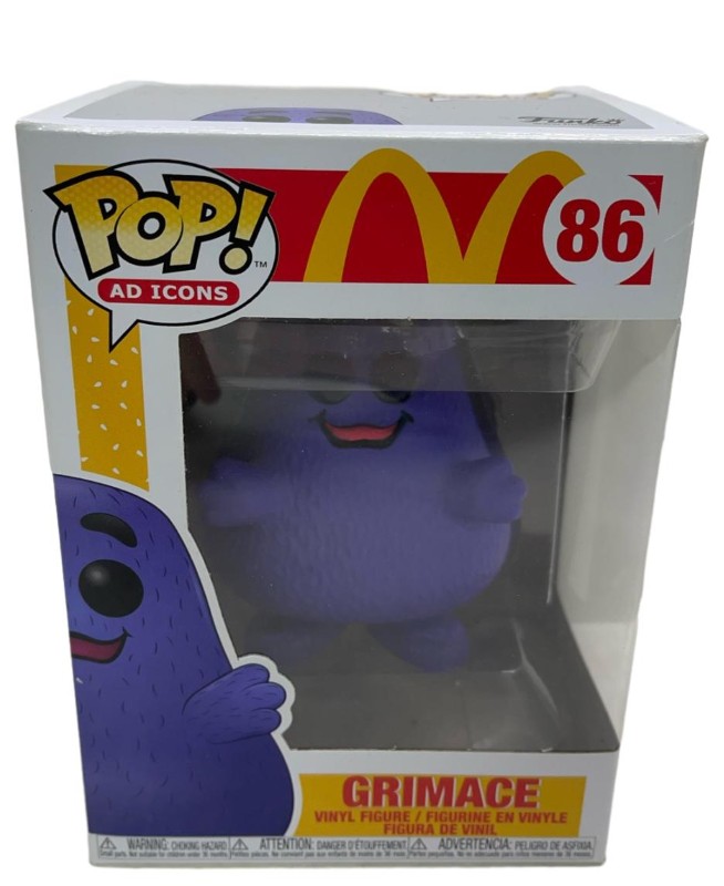 This Funko Pop Vinyl figure depicts the iconic Grimace character from the McDonald's franchise. Standing at the standard 4-inch scale, this collectible figurine is a charming addition to any pop culture enthusiast's display. The figure is in good condition with little sign of wear, making it a great find for both new and seasoned collectors.