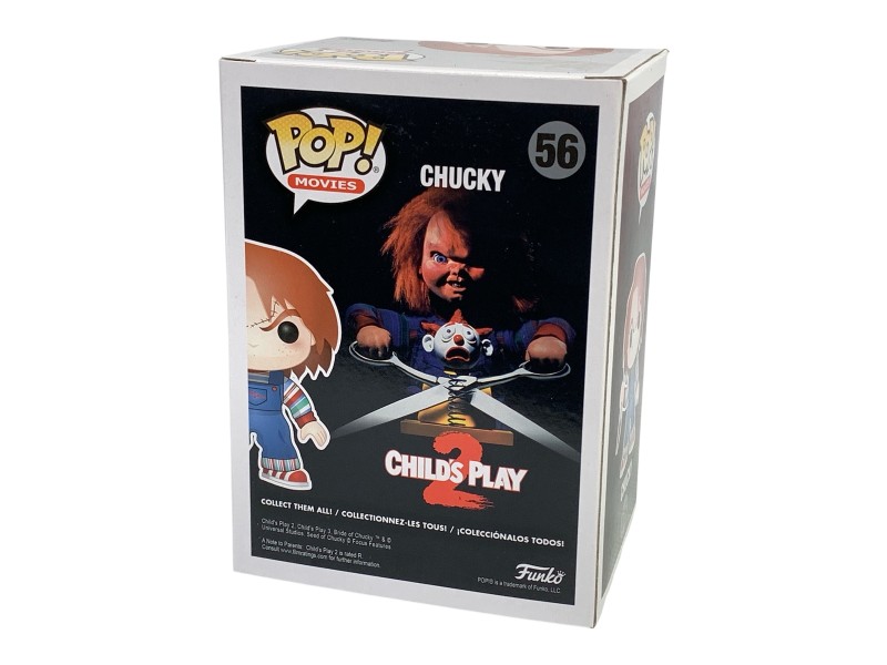 This Funko Pop Vinyl figure depicts the iconic horror character Chucky from the Child's Play 2 film. Crafted with the brand's signature stylised aesthetic, this collectible stands at 56 inches tall and features the doll's distinctive appearance, including his red hair, blue overalls, and menacing expression. A must-have for fans of the franchise and Funko collectors alike.