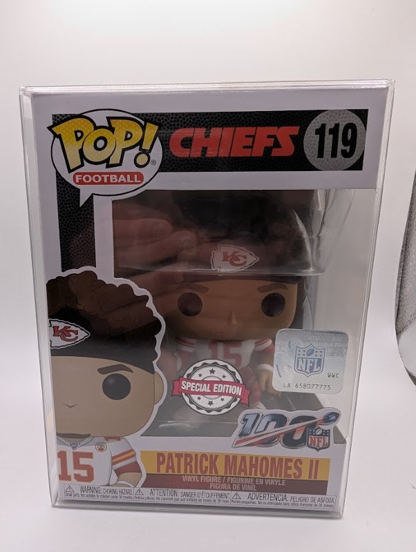 This FUNKO POP! figurine of Patrick Mahomes II in a special edition white jersey is a must-have for any sports fan or collector. The highly detailed and expertly crafted design captures the star quarterback in a dynamic pose, showcasing his athleticism and passion for the game. This limited edition item is sure to be a prized addition to any collection.