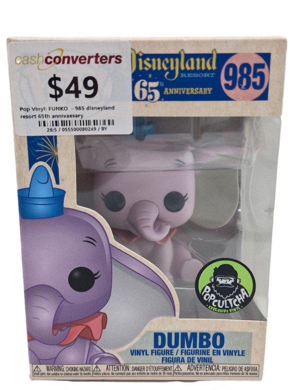 This charming Funko Pop! figure celebrates the 65th anniversary of Disneyland Resort with a delightful depiction of the beloved Disney character, Dumbo. Crafted with meticulous attention to detail, this collectible piece captures the whimsical essence of the classic film. Its vibrant colours and expressive design make it a must-have for any fan of Disney memorabilia.
