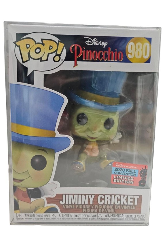 This charming Funko Pop! vinyl figure depicts the beloved character Jiminy Cricket from the classic Disney film Pinocchio. Standing at approximately 4 inches tall, this detailed collectible captures the iconic insect's whimsical expression and vibrant green colouring. A delightful addition to any Disney fan's shelves, this Pop! figure is sure to bring a touch of magic to your home.