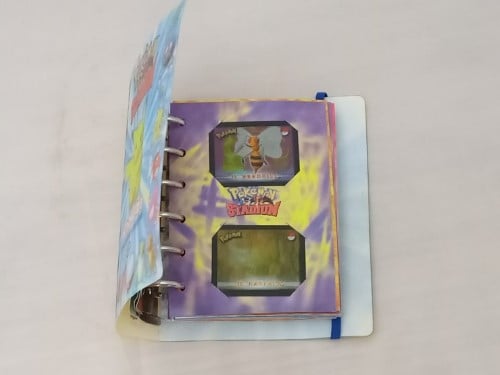 The Pokemon Stadium Action 3D's Collector's Record Blue Card Folder is a high-quality collector's item designed to store and protect your trading cards. This folder features a vibrant blue color and is crafted to hold cards securely, making it an excellent choice for any Pokemon fan. Perfect for organizing and displaying your collection, it offers both functionality and style, ensuring your cards are well-preserved. This collector's record is a great addition to any Pokemon collection.