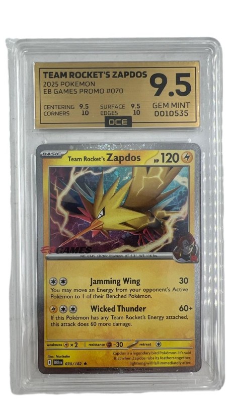 Model Name: 2025 Team Rocket's Zapdos Eb Games Promo 9.5 Graded