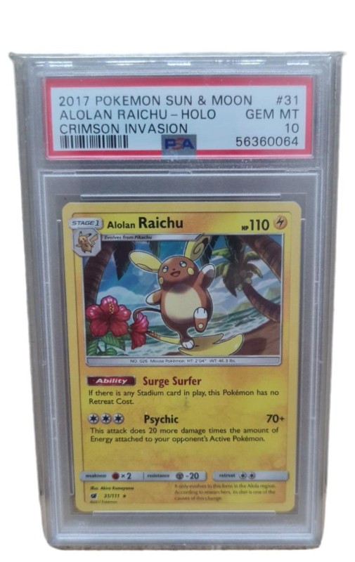 Psa 10 Gem Mint Alolan Raichu Holo Crimson Invasion 2017