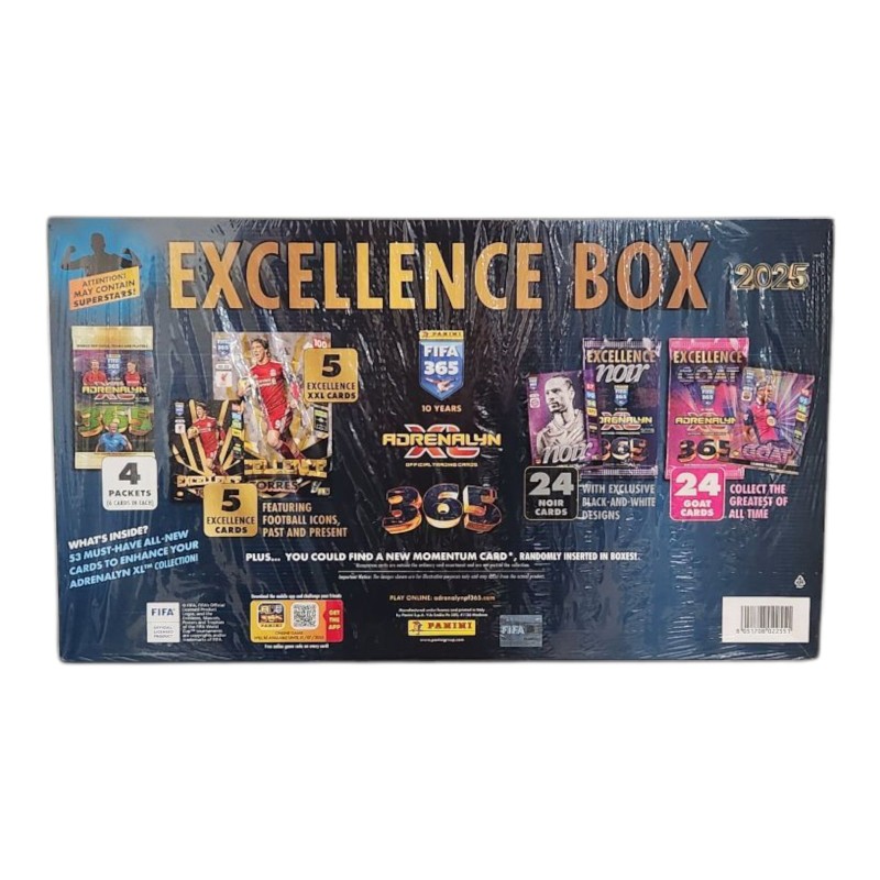 This PANINI FIFA 365 EXCELLENCE BOX 2025 trading card set is a must-have for any football enthusiast. Featuring stunning imagery and detailed player profiles, this collection offers an immersive experience for dedicated fans. With high-quality cards and a sleek presentation, this box set is a fantastic addition to any trading card collection.