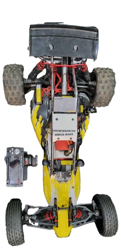 This ROFUN BAHA BAJA 5B 29CC remote control car is a powerful and versatile hobby-grade vehicle. Powered by a 29cc petrol engine, it offers impressive performance and runtime for outdoor adventures. With its rugged off-road design, this RC car can tackle a variety of terrains with ease. The included remote, storage bag, and charger make it a complete package for hours of fun.