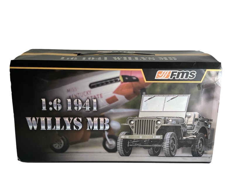 This 1:6 scale remote control car from FMS is a faithful recreation of the iconic 1941 Willys MB. Powered by an electric motor, it comes with a dedicated remote control, allowing you to easily navigate it around. The car is in good condition, with only minor signs of wear.