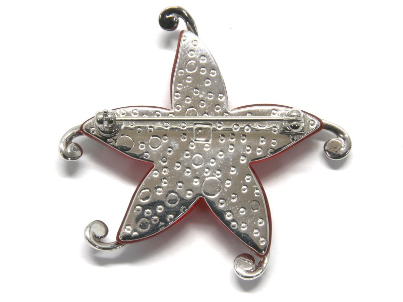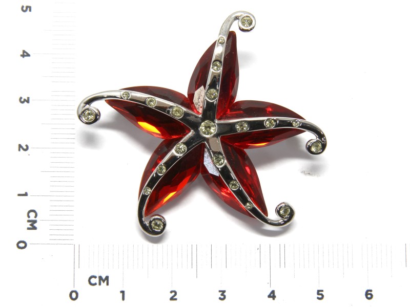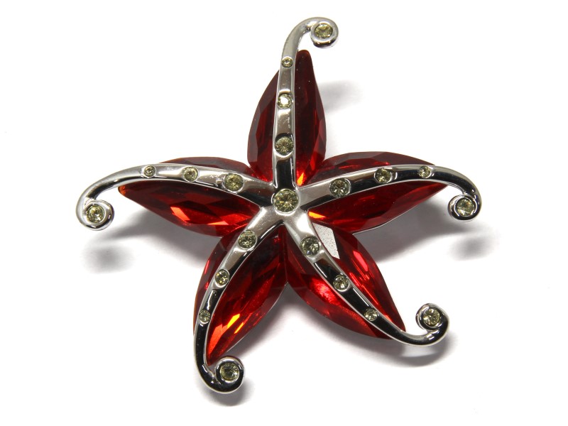 RHODIUM PLATED RED/LIGHT YELLOW CRYSTAL STARFISH BROOCH