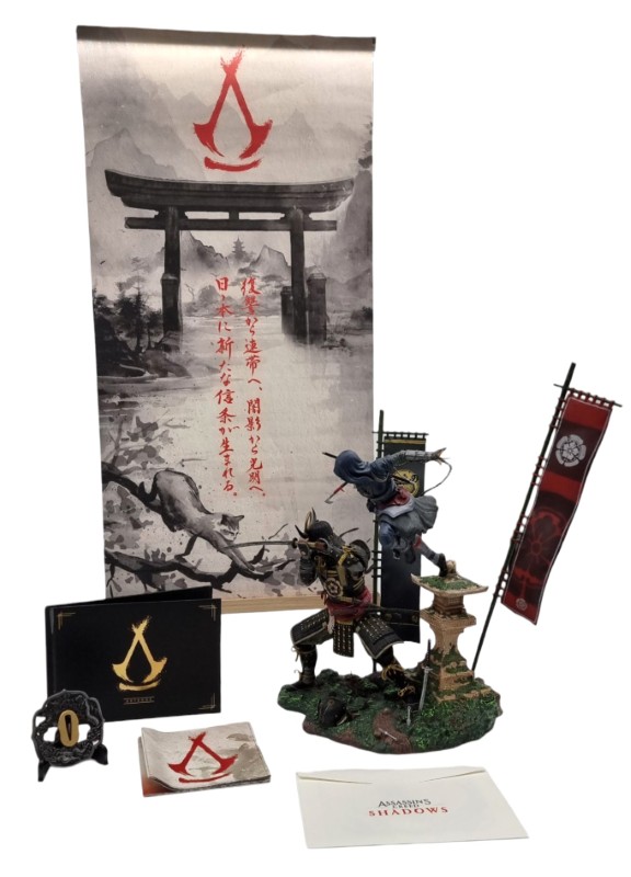 This stunning Assassin's Creed Shadows Collector's Edition Statue is a captivating figurine that brings the world of Assassin's Creed to life. Crafted with meticulous attention to detail, this statue features the iconic assassin in a dynamic pose, ready to strike. Included in this collector's edition are a tapestry, map, ornament with stand, booklet, and envelope, enhancing the immersive experience for fans of the franchise.