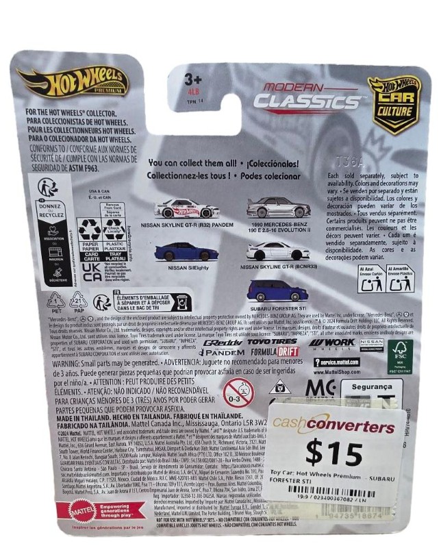 This premium Hot Wheels Subaru Forester STI model is a delightful addition to any toy car collection. Crafted with attention to detail, this miniature vehicle captures the sleek design and sporty styling of the real-life Subaru Forester STI. With its vibrant colouring and smooth rolling action, it's sure to provide endless hours of imaginative play for car enthusiasts of all ages.