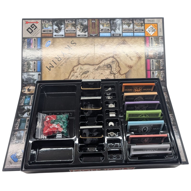 This classic Monopoly board game has been given a thrilling Skyrim twist, allowing you to immerse yourself in the captivating world of the popular video game. Featuring iconic locations, characters, and gameplay elements from the Elder Scrolls series, this edition offers a unique and engaging gaming experience for fans and newcomers alike.