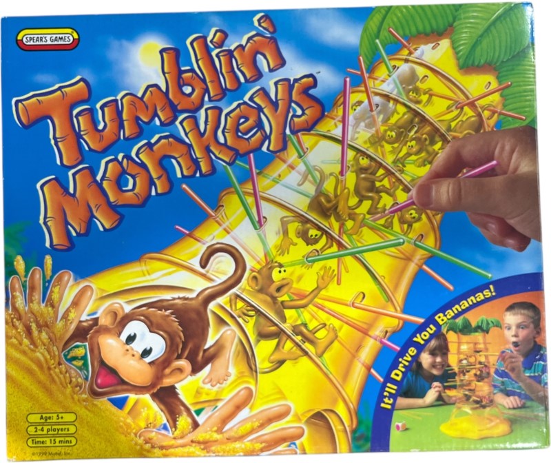 This classic Tumblin' Monkeys board game from SPEAR'S GAMES provides hours of engaging fun and educational entertainment. Players take turns rolling dice to carefully stack the colourful wooden monkeys, testing their dexterity and balance. With vibrant graphics and a sturdy construction, this game encourages strategic thinking, hand-eye coordination, and friendly competition. Whether playing solo or with friends and family, Tumblin' Monkeys is sure to delight players of all ages.