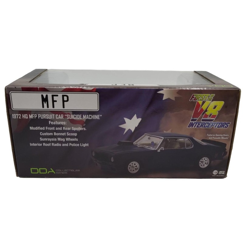 This highly detailed 1:18 scale model car is a must-have for any automotive enthusiast. Expertly crafted, it faithfully recreates the iconic 1972 HQ Monaro Pursuit, the first of the legendary V8 Interceptors. With its sleek lines, bold colours, and authentic detailing, this collectible piece captures the spirit of the original vehicle. A true testament to the DDA brand's commitment to quality and attention to detail.