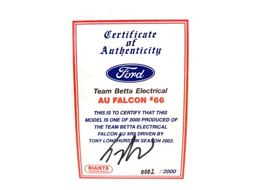 Model Name: 2002 Team Betta Electrical Ford Falcon Au Xr8 1:43 - #66 Tony Longhurst Signed