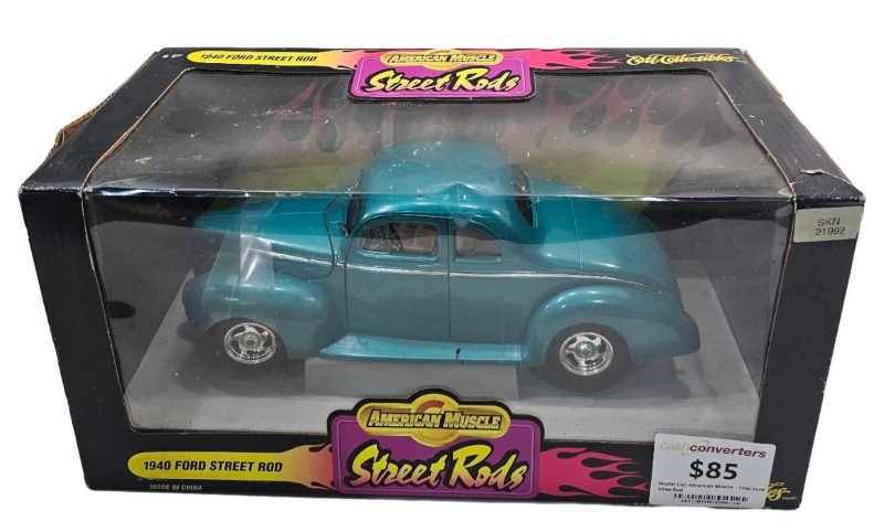 This 1940 Ford Street Rod model car from American Muscle is a fantastic addition to any toy car collection. Featuring a sleek and stylish design, this model captures the essence of the iconic Ford hot rod. With its detailed exterior and well-crafted interior, this car is sure to impress.