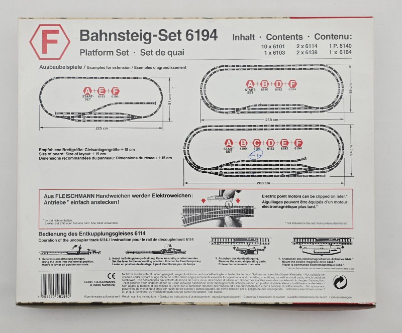 This classic FLEISCHMANN platform set model 6194 is a delightful addition to any model train enthusiast's collection. Crafted with attention to detail, it features a range of realistic elements that capture the essence of railway infrastructure. With its well-maintained condition and minimal signs of wear, this set is ready to provide hours of engaging play and display.