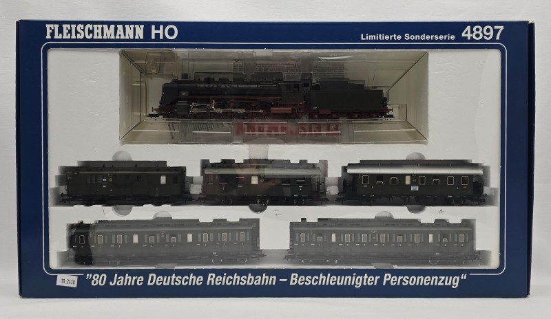 This RARE FLEISCHMANN HO 4897 DRG Accelerate Passenger Train (epoch II) limited edition is a highly detailed model that captures the essence of vintage rail travel. Crafted with exceptional attention to detail, this set offers an immersive experience for enthusiasts and collectors alike. With its sleek design and authentic features, it promises to transport you back in time and ignite your passion for model railroading.