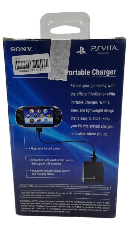This PS Vita gaming charger from Sony (model PCH-ZPC1) is a reliable accessory for keeping your handheld console powered up. It functions as expected, with only light cosmetic wear evident from previous use. Included in the box, this charger provides a convenient way to maintain your device's battery life.