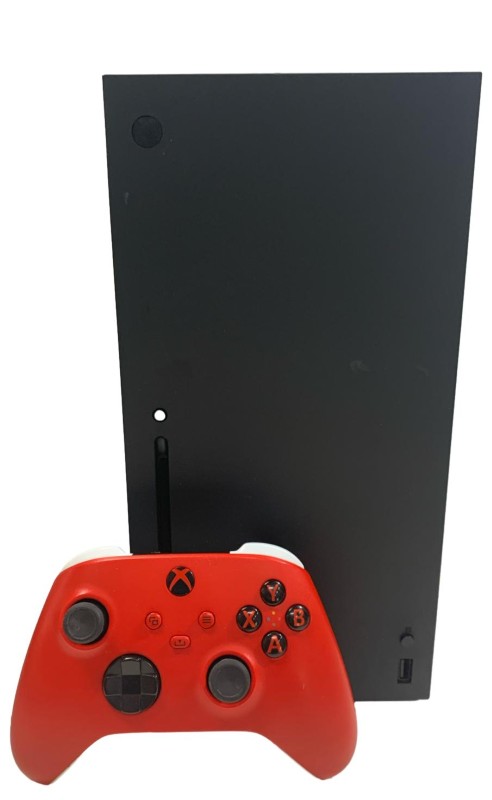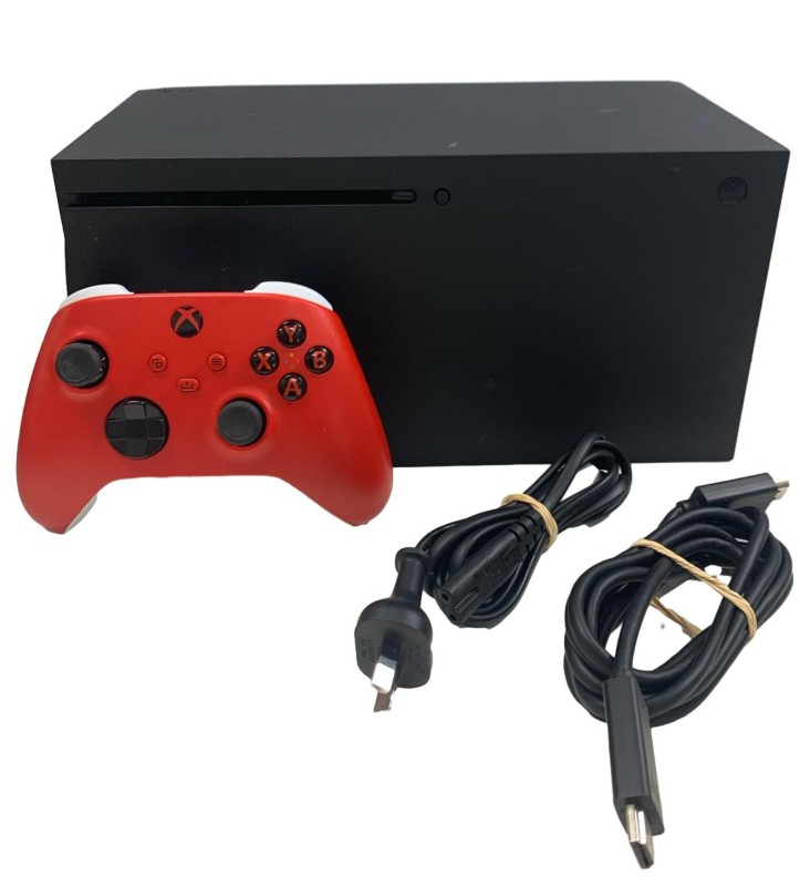 This powerful Xbox Series X console delivers exceptional gaming performance with its lightning-fast 1TB SSD storage and cutting-edge AMD processor. Experience immersive, high-fidelity visuals and smooth gameplay across a vast library of titles. The included red controller and essential cables provide a complete setup right out of the box.