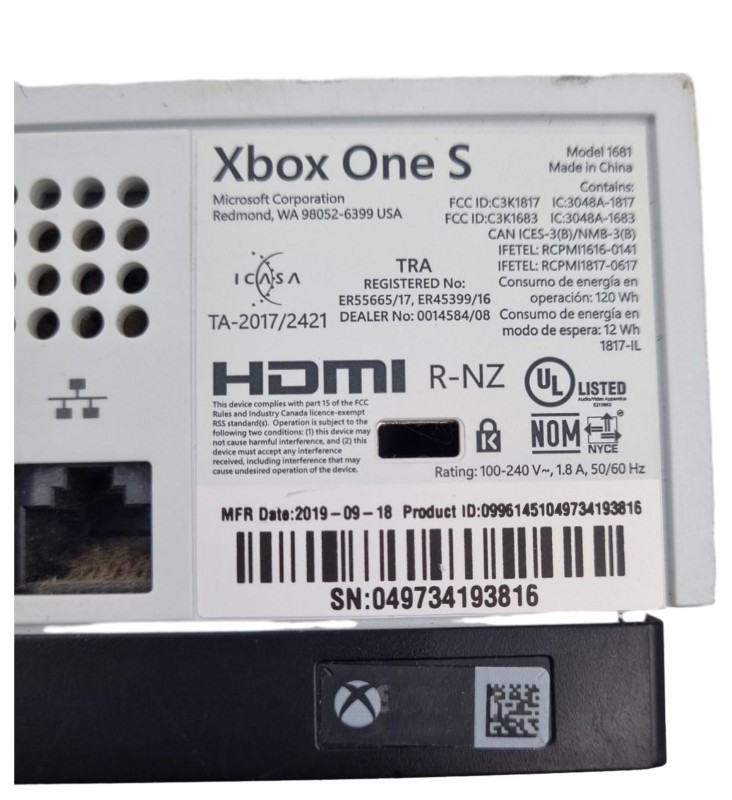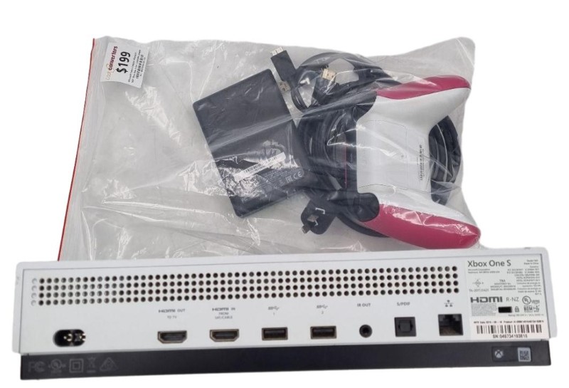 This sleek Microsoft Xbox One S console offers a powerful gaming experience. With 1TB of storage, you can store a vast library of games and media. Included are a controller, power cable, HDMI cable, and a 1TB hard drive, providing everything you need to start gaming right away. The console is in good condition with little sign of wear, ensuring a reliable and enjoyable gaming session.