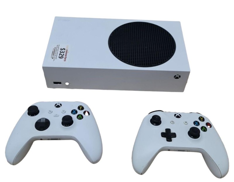 This compact and powerful Microsoft Xbox Series S console delivers a seamless gaming experience. With its sleek design and impressive performance, it's the perfect addition to any entertainment setup. Enjoy fast loading times, smooth gameplay, and stunning visuals across a vast library of games. The included controllers and essential cables ensure you're ready to dive in right away. This console is in good condition with little sign of wear, making it a great choice for your gaming needs.