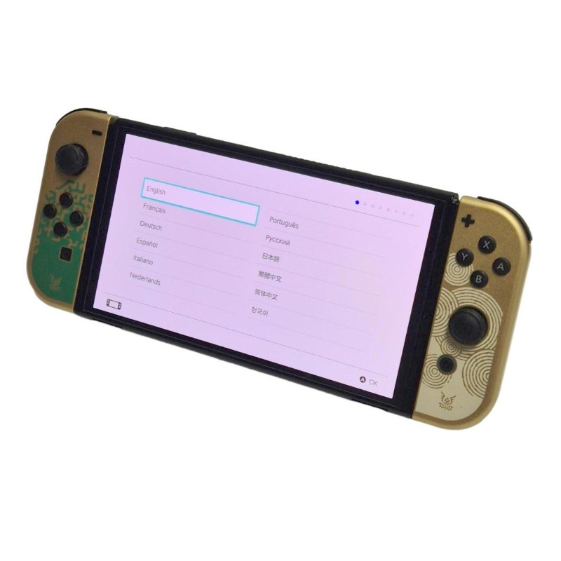 This Nintendo Switch OLED console in the Legend of Zelda edition offers a stunning OLED display and a range of premium accessories. The vibrant OLED screen delivers exceptional visual clarity and contrast, immersing you in your gaming experiences. With 32GB of storage, you can store a variety of games and digital content. Included are a protective case, controller grips, the console dock, power adapter, and HDMI cable, providing everything you need to set up and enjoy this console.
