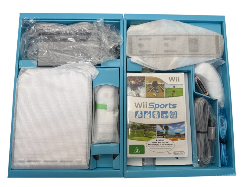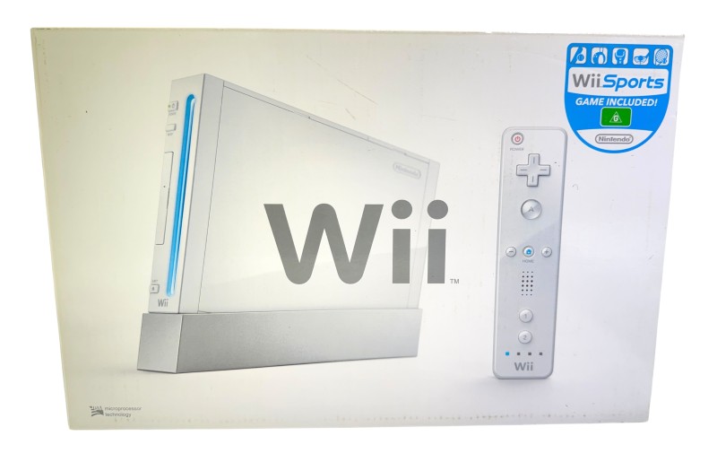 This Nintendo Wii gaming console is in pristine condition, sealed in its original packaging. The box shows some minor cosmetic marks, but the console itself remains untouched. With its intuitive motion controls and vast library of games, the Wii offers endless entertainment for the whole family.