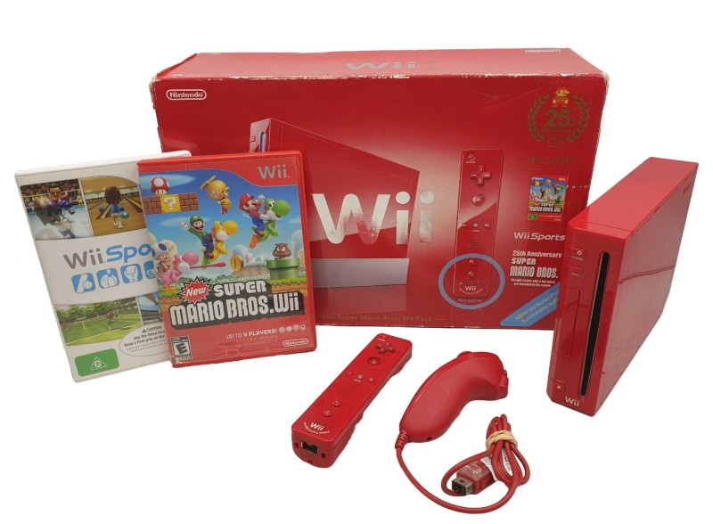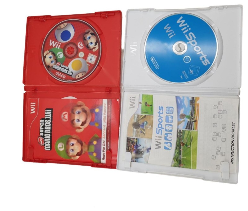 Accessories: Box, Wii-Mote, Nun-Chuck, Sensor, Power Supply, AV Leads & Stand, New Super Mario Bros & Wii Sports Games