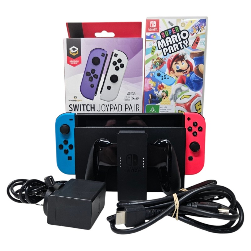 Accessories: Super Mario Party, Dock, Power, Joycons With Top Straps, Joycon Holder, Boxed Powerwave Joycons