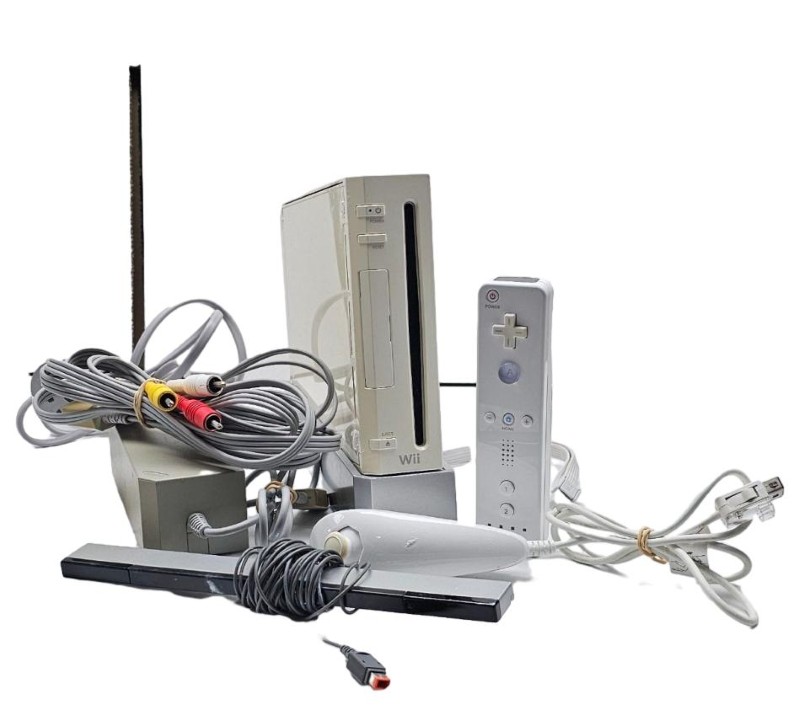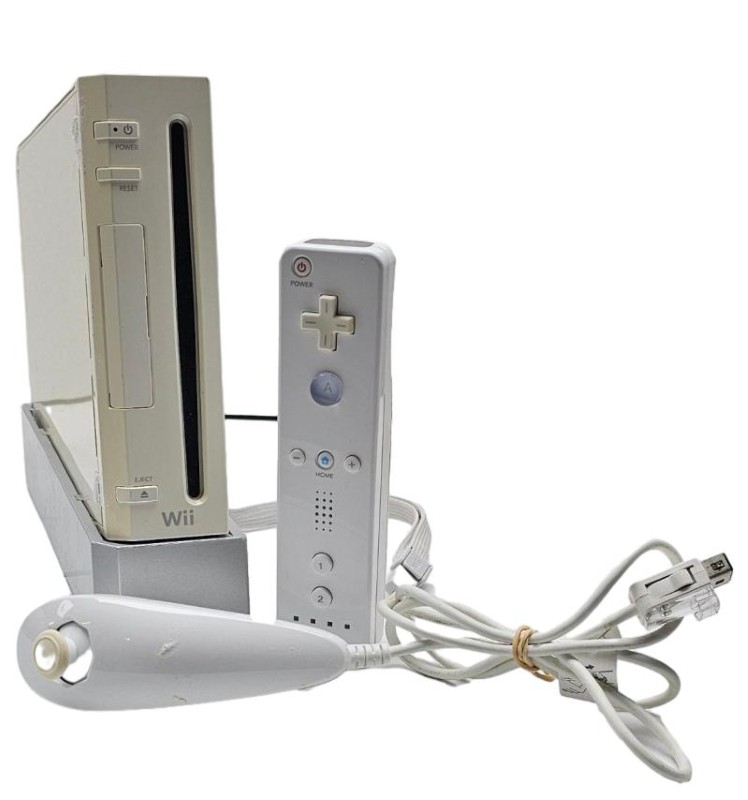 Accessories: 1x remote, 1x nunchuck, Power, Sensor Bar and Stand.