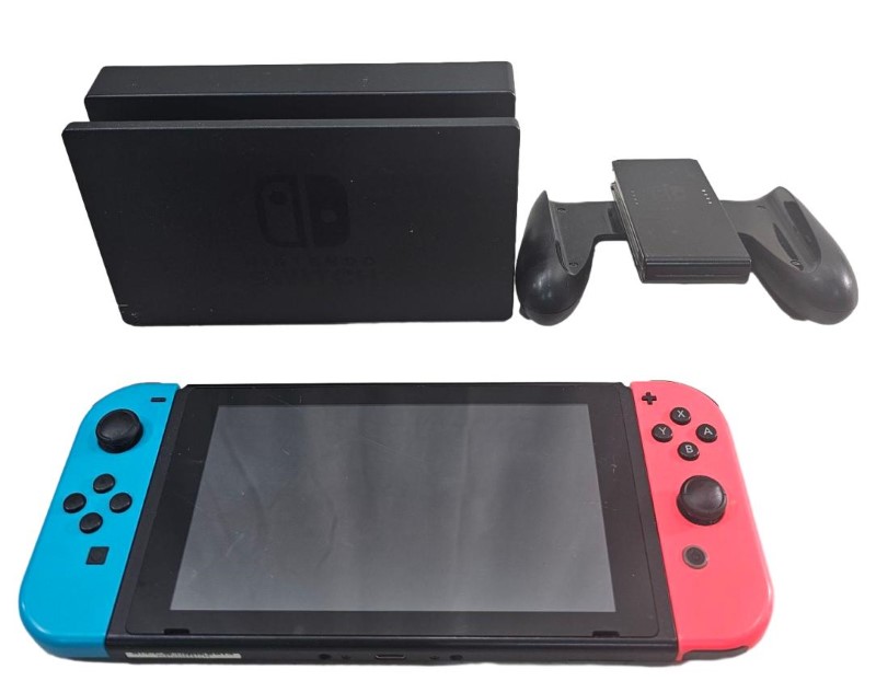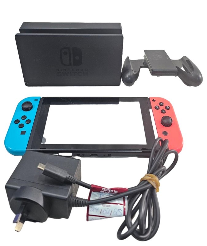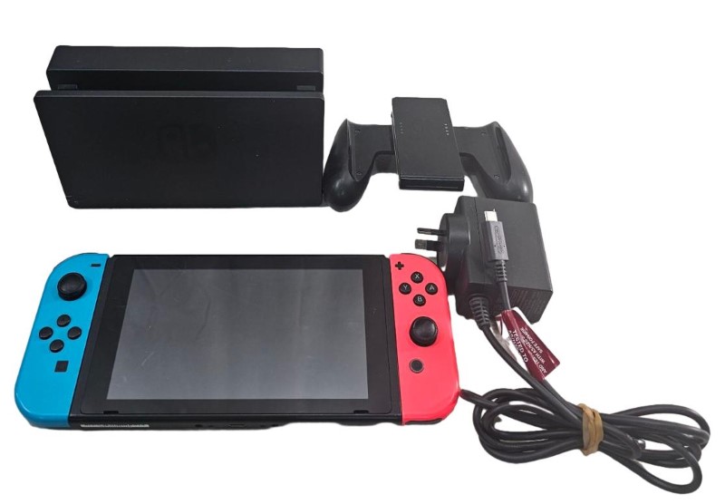 This Nintendo Switch console is a versatile and portable gaming device that allows you to enjoy a wide range of games on the go or connected to your TV. With its 8GB of storage, you can download and store your favourite titles. Despite some light cosmetic wear, the console remains in good working condition and comes with the necessary chargers to keep it powered up.
