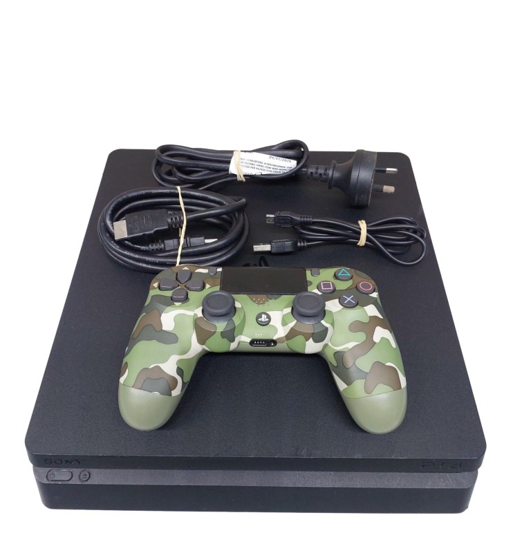 This Sony Playstation 4 Slim console offers a compact and streamlined design, delivering an immersive gaming experience. With a 500GB hard drive, you'll have ample storage for your digital library. The included controller, HDMI cable, and power cord provide everything you need to get started. While the console shows light cosmetic wear, it remains fully functional, ready to bring your favourite games to life.