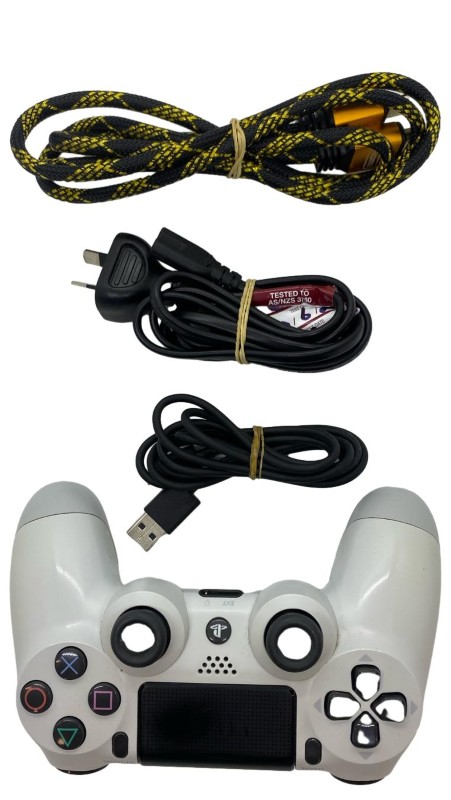 This Sony Playstation 4 Slim console is a compact and powerful gaming system that offers an immersive entertainment experience. With its sleek design and impressive 500GB storage capacity, it provides ample space for your digital game library and media content. Enjoy smooth and responsive gameplay with the included controller, and easily connect to your TV using the HDMI cable. This console is in good condition, with little sign of wear, ensuring reliable performance for your gaming sessions.