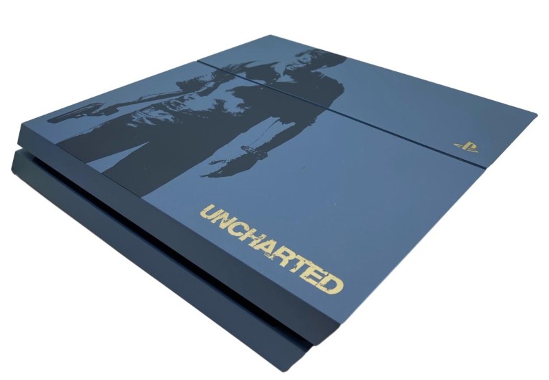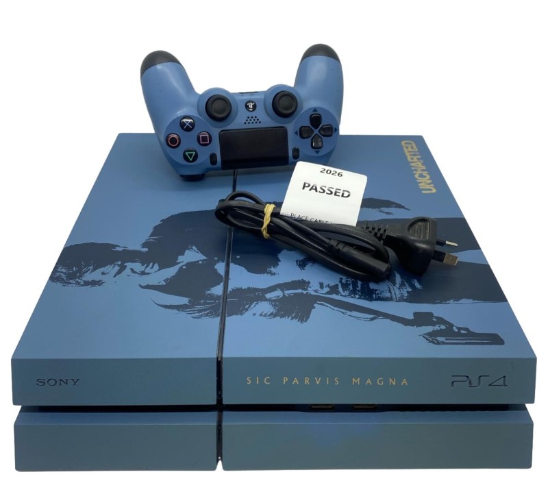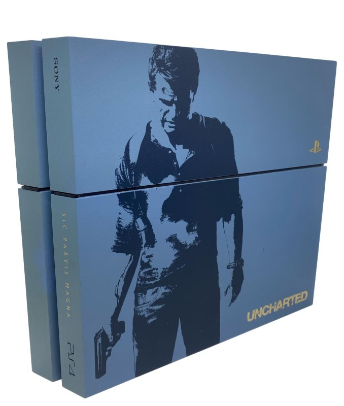 This Sony Playstation 4 CUH-1202B - Uncharted 4 Limited Edition console offers an immersive gaming experience. With a 1TB storage capacity, you can store a vast library of games. The console is in good condition, with little sign of wear.
