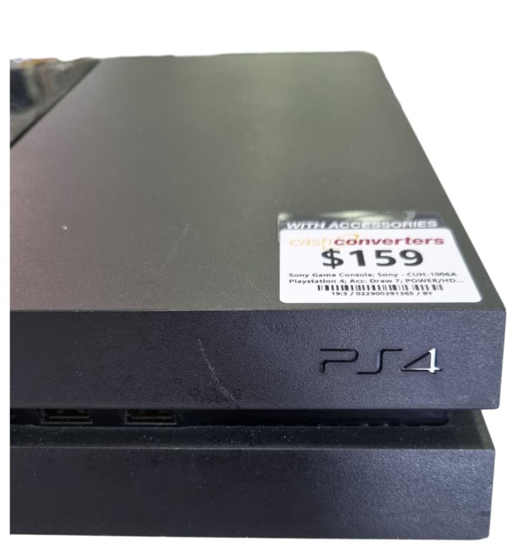 This Sony Playstation 4 console in the CUH-1006A model offers a robust gaming experience. With 500GB of storage, you can enjoy a vast library of games and media. The console shows light cosmetic wear but remains fully functional. Included are the essential power, HDMI, and USB cables to get you set up and playing right away.