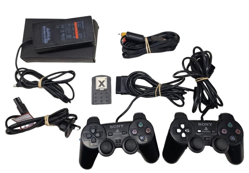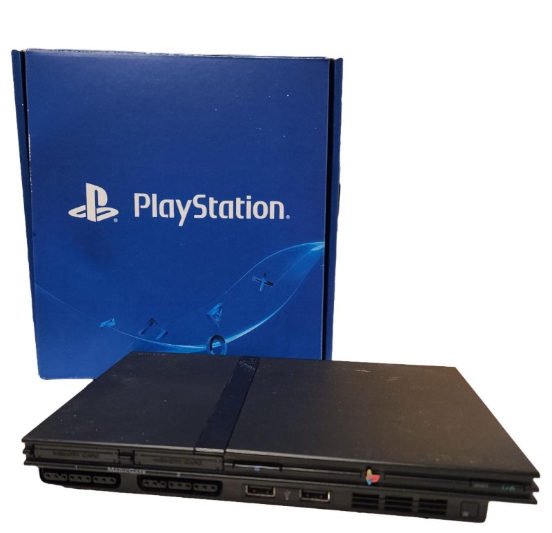This Sony PlayStation 2 Slim console (model SCPH-75002) is in good condition with little sign of wear. It comes with the original box, 2 controllers, an AV cable, a power cable, and a PLAYMAX 16MB memory card. This compact and sleek PS2 Slim model offers a great gaming experience with its impressive library of titles and reliable performance. Whether you're looking to revisit classic PlayStation 2 games or explore the console's extensive catalogue, this PlayStation 2 Slim is a fantastic choice.